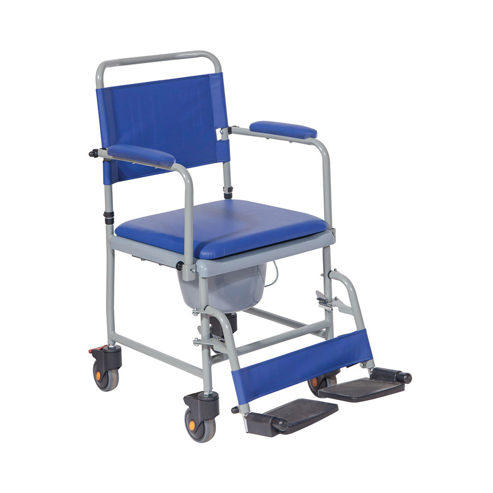 Αμαξίδιο μπάνιου – τουαλέτας με λειτουργία 3 σε 1 με υψηλή ποιότητα κατασκευής και ιδιαίτερα στιβαρό σκελετό για χρήστες με βάρος έως 136 kg. Σχεδιασμένο για άνετη εσωτερική μετακίνηση, χρήση ως κάθισμα μπάνιου και ως τουαλέτα για ασφαλή εξυπηρέτηση ατόμων με μειωμένη κινητικότητα. Διαθέτει αφαιρούμενο δοχείο WC, μαλακό κάθισμα και πτυσσόμενα μέρη για ευκολία στη χρήση και στη φροντίδα.