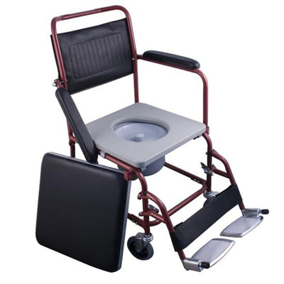 Πρακτικό αμαξίδιο μπάνιου και τουαλέτας Alfacare σε κόκκινο χρώμα, με εργονομικό αφρώδες κάθισμα, αναδιπλούμενα πλαϊνά και αποσπώμενα υποπόδια. Κατάλληλο για άνετη καθημερινή χρήση σε εσωτερικούς χώρους, προσφέροντας σταθερότητα και ευκολία χειρισμού.