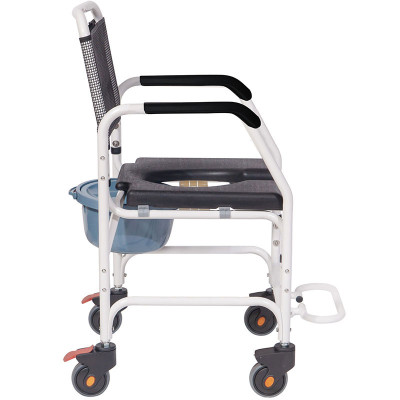 Λειτουργικό και ελαφρύ αμαξίδιο με δοχείο WC, κατάλληλο για χρήση ως κάθισμα μπάνιου ή αυτόνομη τουαλέτα. Ο ελαφρύς σκελετός και η πρακτική του σχεδίαση διευκολύνουν τη μετακίνηση και την καθημερινή φροντίδα ατόμων με περιορισμένη κινητικότητα. Πολύ στιβαρή κατασκευή για χρήστες με βάρος μέχρι 136 kg.
