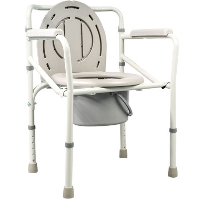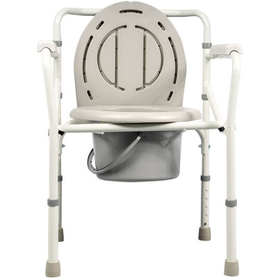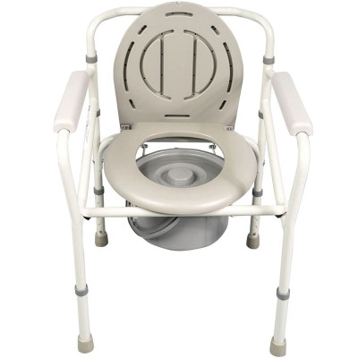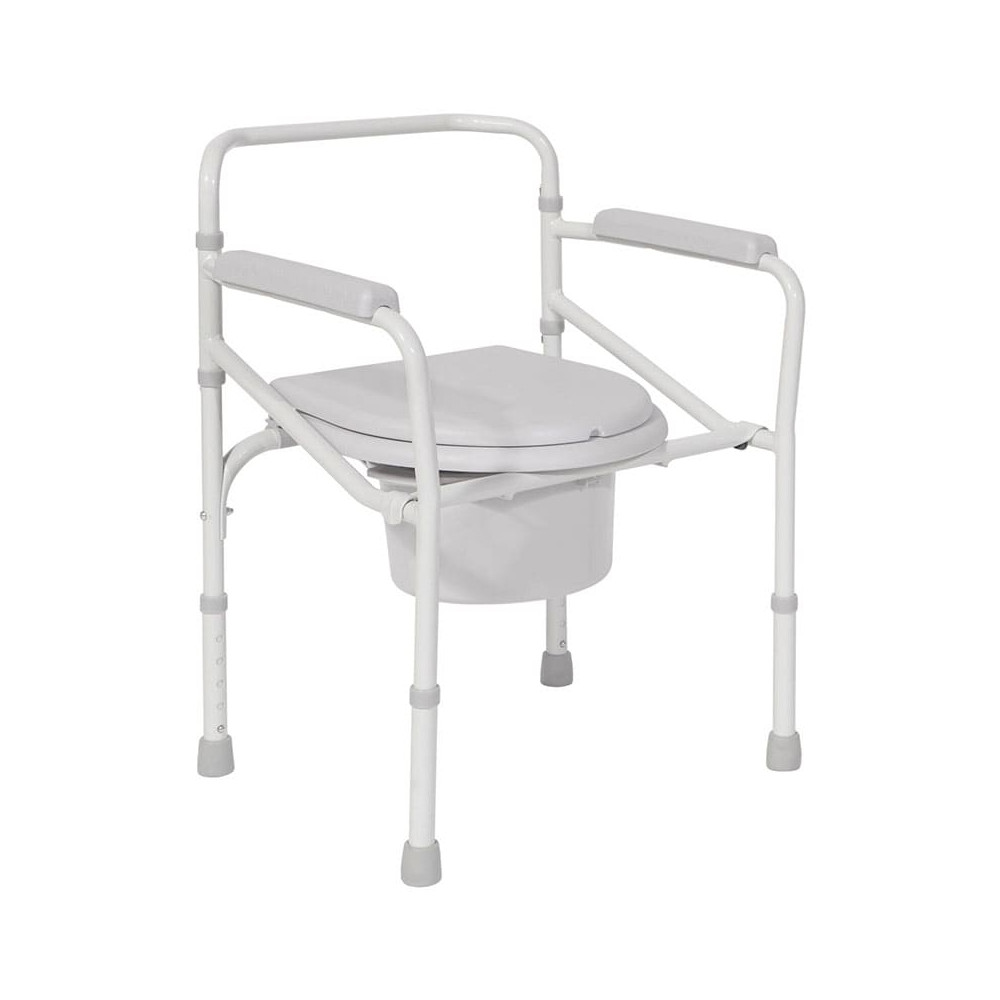 Πτυσσόμενη καρέκλα τουαλέτας Mobiakcare με ρυθμιζόμενο ύψος και αποσπώμενο δοχείο. Κατάλληλη για αυτόνομη χρήση ως τουαλέτα ή τοποθέτηση πάνω από τη λεκάνη. Στιβαρή κατασκευή για μέγιστο βάρος χρήστη 115 kg.