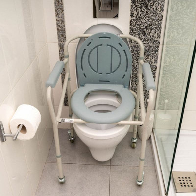 Η καρέκλα τουαλέτας με ρόδες της Mobiakcare συνδυάζει φορητότητα και πρακτική χρήση για άτομα που χρειάζονται υποστήριξη στην τουαλέτα. Ο χαλύβδινος σκελετός της αντέχει έως 115 kg, ενώ η πτυσσόμενη κατασκευή προσφέρει εύκολη αποθήκευση. Με ρυθμιζόμενο ύψος και τροχήλατη βάση, μπορεί να οδηγηθεί απευθείας πάνω από τη λεκάνη, προσφέροντας άνεση και λειτουργικότητα στον χρήστη.