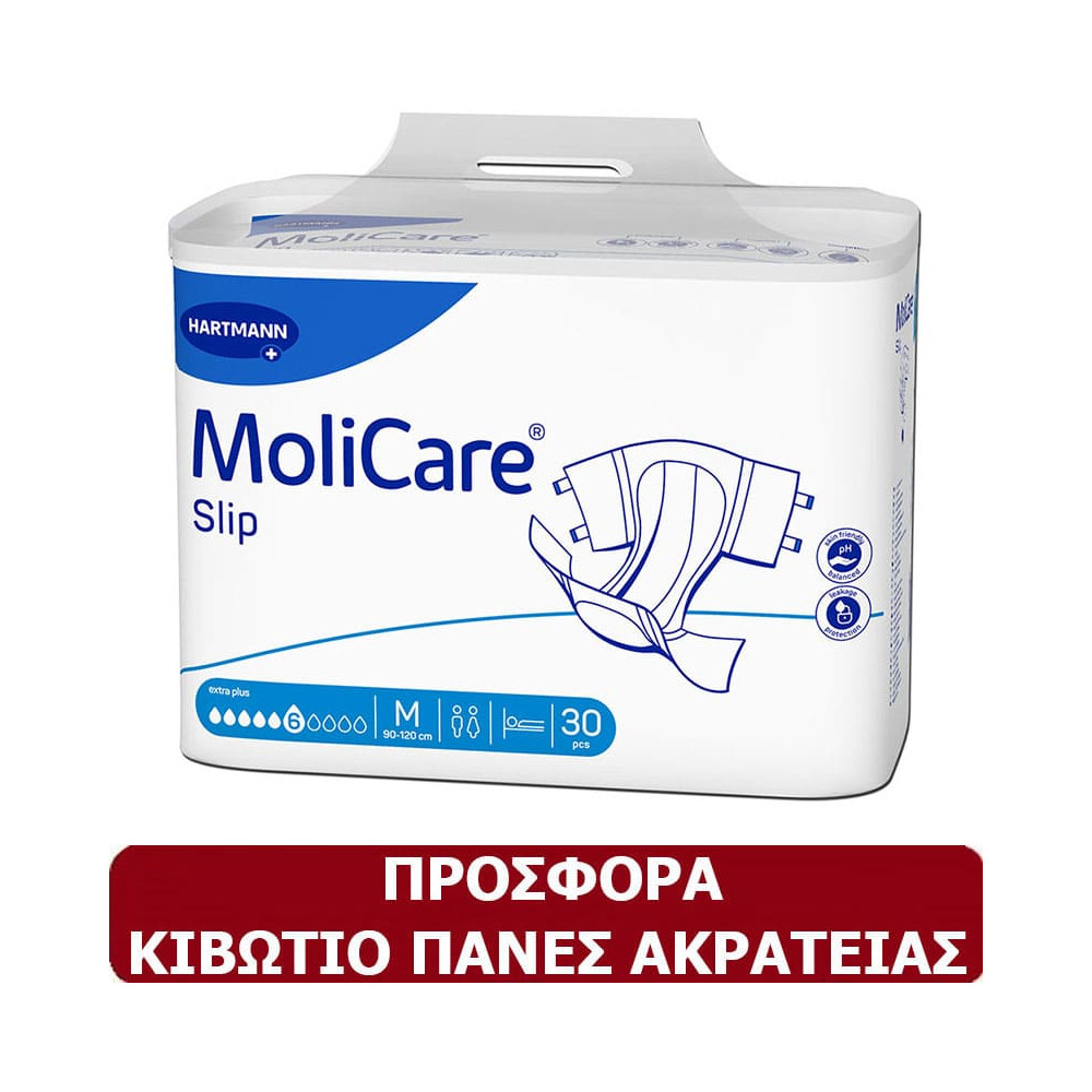 Με την αγορά κιβωτίου στις πάνες ακράτειας Molicare Extra Plus του οίκου Hartmann Γερμανίας (90 τεμάχια) επωφελείστε άμεσα μείωση τιμής κατά 3 €. Οι πάνες Molicare Extra προσφέρουν προηγμένη απορροφητικότητα 6 σταγόνων, ανατομική εφαρμογή και SkinGuard® τεχνολογία για υγιές δέρμα και μακροχρόνια προστασία. Σε Medium μέγεθος για περιφέρεια λεκάνης 90 – 120 cm.