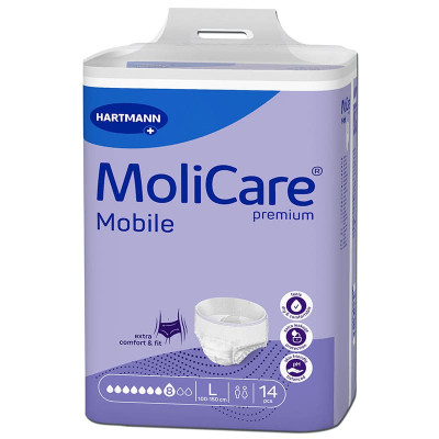 Αποκτήστε 4 συσκευασίες (56 τεμάχια) και εξοικονομείστε 4 € με την αγορά κιβωτίου πάνες βρακάκι για πολύ μεγάλη ακράτεια Molicare Mobile Super της Hartmann. Συνδυάζουν κορυφαία τεχνολογία απορρόφησης με απαλή, διαπνέουσα επιφάνεια χαρίζοντας απόλυτη προστασία από διαρροές και ερεθισμούς ακόμα και κατά τη διάρκεια της νύχτας.