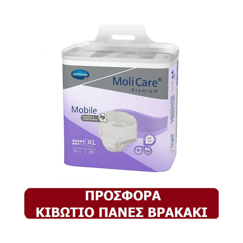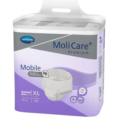 Επιλέξτε με όφελος 4 € την οικονομική αγορά κιβωτίου που περιέχει 4 συσκευασίες πάνες βρακάκι ενηλίκων Molicare Mobile Super σε XLarge μέγεθος για άτομα με πολύ βαριά ακράτεια.