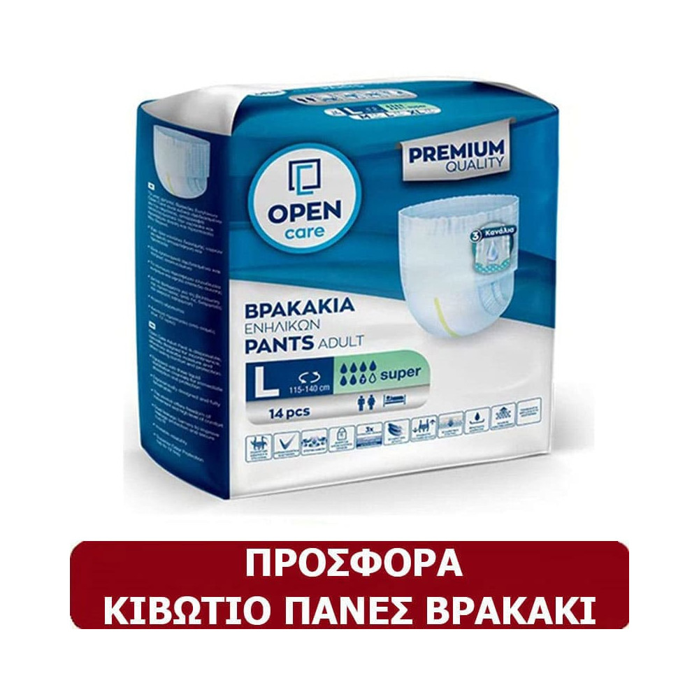 Κιβώτιο πάνες βρακάκια για ενήλικες Open Care| Large 56 τμχ