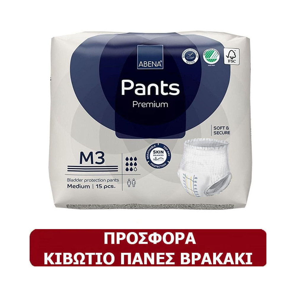 Η οικονομική αγορά κιβωτίου με 90 πάνες βρακάκι για πολύ μεγάλη ακράτεια Abena Pants M3 είναι ιδανική για καθημερινή φροντίδα, μειώνοντας το κόστος ανά τεμάχιο χωρίς να θυσιάζει την ποιότητα (συνολικό όφελος 6 €). Οι πάνες Abena M3 σε medium μέγεθος, συνδυάζουν μέγιστη απορροφητικότητα 2400 ml υγρών, προστασία από διαρροές και διακριτική εφαρμογή.